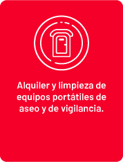 Alquiler y limpieza de equipos portátiles de aseo y de vigilancia.