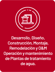 Desarrollo, Diseño, Construcción, Montaje, Remodelación y O&M - Operación y mantenimiento de Plantas de tratamiento de aguas para consumo humano, Plantas de tratamiento de efluentes domésticos y Plantas de tratamiento de efluentes industriales.